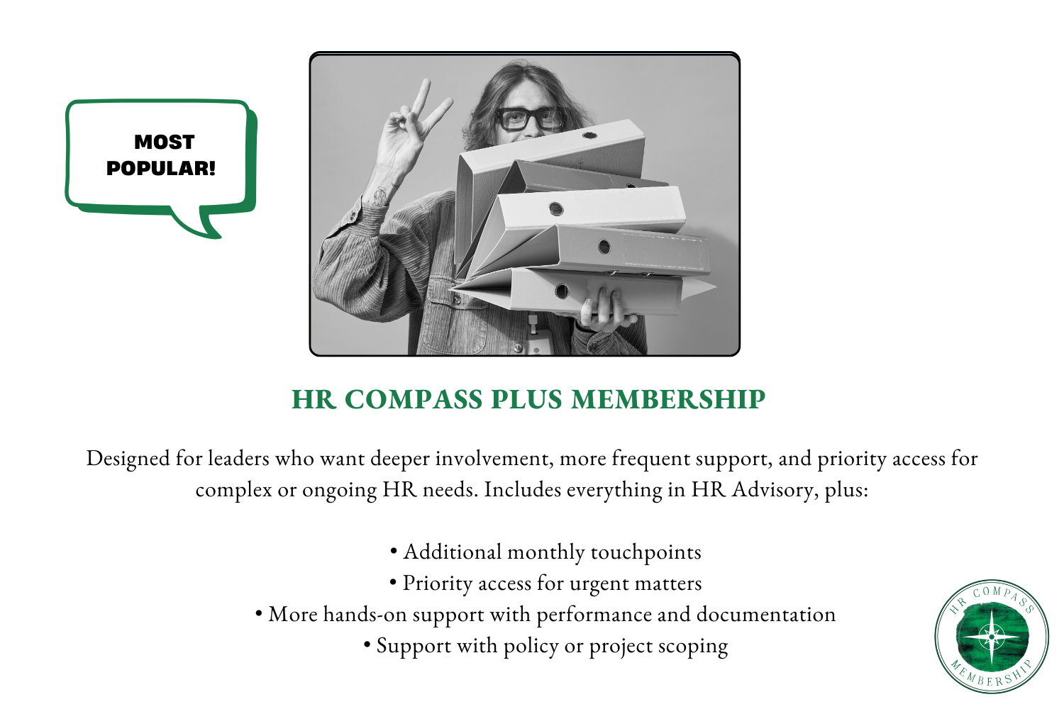 It can, but it does not have to. Many organizations use the HR Compass Membership to support and elevate their existing HR staff, giving them senior-level guidance on sensitive or complex issues. For organizations without in-house HR, the membership provides a trusted advisor who can guide leaders through hiring, performance, compliance, and conflict with clarity and confidence.